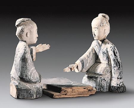 木俑大多出土于頭廂位置,或圍繞著墓主人周邊擺放。文獻稱墓中的俑為“亡童(僮)”或“冥童(僮)”,盡管被貼上了“亡”的標簽,但墓俑仍展示仆從的生動形象,不僅取代了人殉,同時也實現了人殉的功能,俑的出現和流行象征著奴隸制社會的結束。在喪葬觀念中,現成的隨葬品逐漸被復制品和各種“再現形象”所代替。而墓俑成為一個特殊的類別,是寫實化和想象結合的藝術形式。