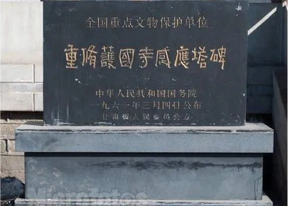 西夏碑,本名《涼州重修護(hù)國(guó)寺感通塔碑銘》,碑高26米,寬1米,厚03米。碑首呈半圓形,兩面正中用漢文和西夏文篆額,邊陰刻對(duì)稱(chēng)的伎樂(lè)舞女,翩翩起舞,動(dòng)作優(yōu)美,造型準(zhǔn)確;舞女胸和手腕上有飾物,赤露上身、雙腳,下著長(zhǎng)裙,面形肌肉豐滿(mǎn),吸收了敦煌飛天的藝術(shù)特點(diǎn)。碑身的兩邊呈殺角,邊上刻忍冬紋。碑一面為西夏文,共28行,滿(mǎn)行65字。西夏文是一種被人們遺忘了的語(yǔ)言文字,無(wú)法辨認(rèn),當(dāng)時(shí)被稱(chēng)為“天書(shū)”。但碑的陽(yáng)面為漢文,共26行,滿(mǎn)行76字。張澍先生見(jiàn)碑陽(yáng)文末尾有“天祐民安五年歲次甲戌十五日戊建”落款,“天祐民安”為西夏年號(hào),遂判定此碑為西夏碑文,因此,人們以后稱(chēng)之為西夏碑。1961年就被國(guó)務(wù)院公布列為全國(guó)第一批重點(diǎn)文物保護(hù)單位。