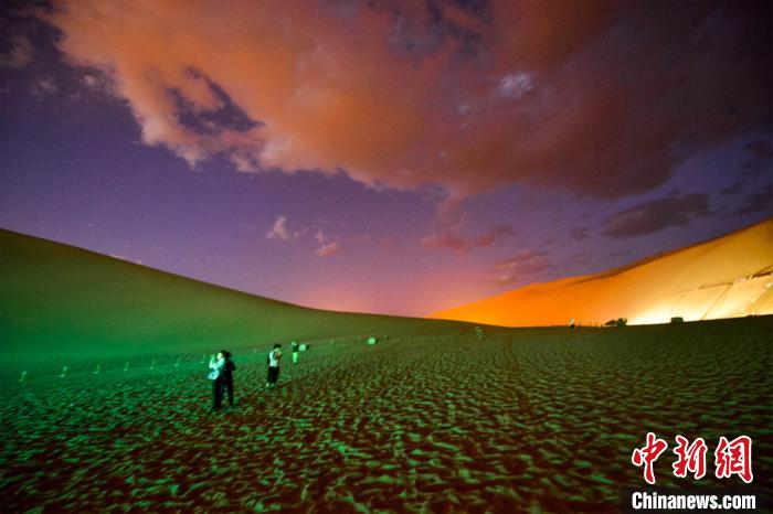 圖為游客觀賞大漠夜景?!⊥醣筱y 攝