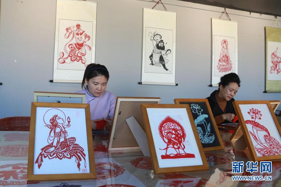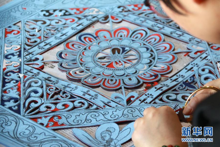 在甘肅敦煌小鎮(zhèn)鳴沙書院,學員在“敦煌剪紙”酒泉市級非物質文化遺產代表性傳承人莊生娟的工作室內剪紙(2020年12月31日攝)。新華社發(fā)(張曉亮 攝)