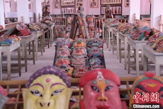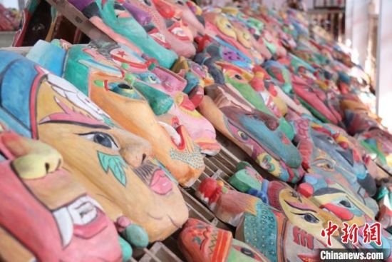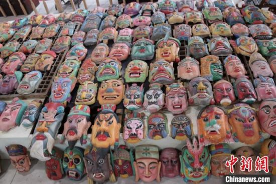 中新網(wǎng)蘭州2月20日電(閆姣) 近日,陳列于蘭州市七里河區(qū)一民俗文化館中,數(shù)量眾多、場面震撼的數(shù)千儺面具引起網(wǎng)友關(guān)注。不少網(wǎng)友調(diào)侃面具上色前后稱,“這才是無效化妝和有效化妝的強烈對比。”