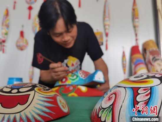 取材、挖空、刨光、勾線、著色……經(jīng)過這些步驟,一個(gè)馬勺臉譜就完成了。馬勺臉譜由中國(guó)民間社火臉譜演化而來,已有數(shù)千年歷史,系列產(chǎn)品主要包括馬勺臉譜、梭子臉譜、鏟子臉譜、木锨臉譜等。9月初,甘肅省隴南市徽縣馬勺臉譜的省級(jí)傳承人馬龍,依舊在工作室創(chuàng)作。今年47歲的他,堅(jiān)守馬勺臉譜的制作技藝已有20余載,不僅傳承了社火臉譜和京劇臉譜的古韻,而且創(chuàng)新了貼金、刻繪等技藝,在傳統(tǒng)中融入了現(xiàn)代造型和色彩元素。它的作品在網(wǎng)絡(luò)引起熱議:“臉譜畫在梭子上,厲害了。”“寶藏非遺,期待下次打卡。”