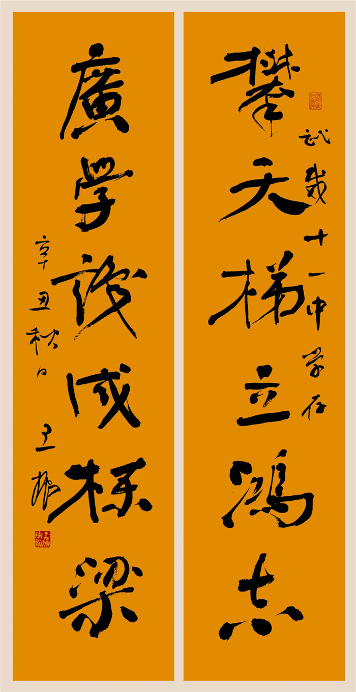 莫言擬聯(lián)、書(shū)法家王振撰寫(xiě)作品:攀天梯立宏志,廣學(xué)識(shí)成棟梁