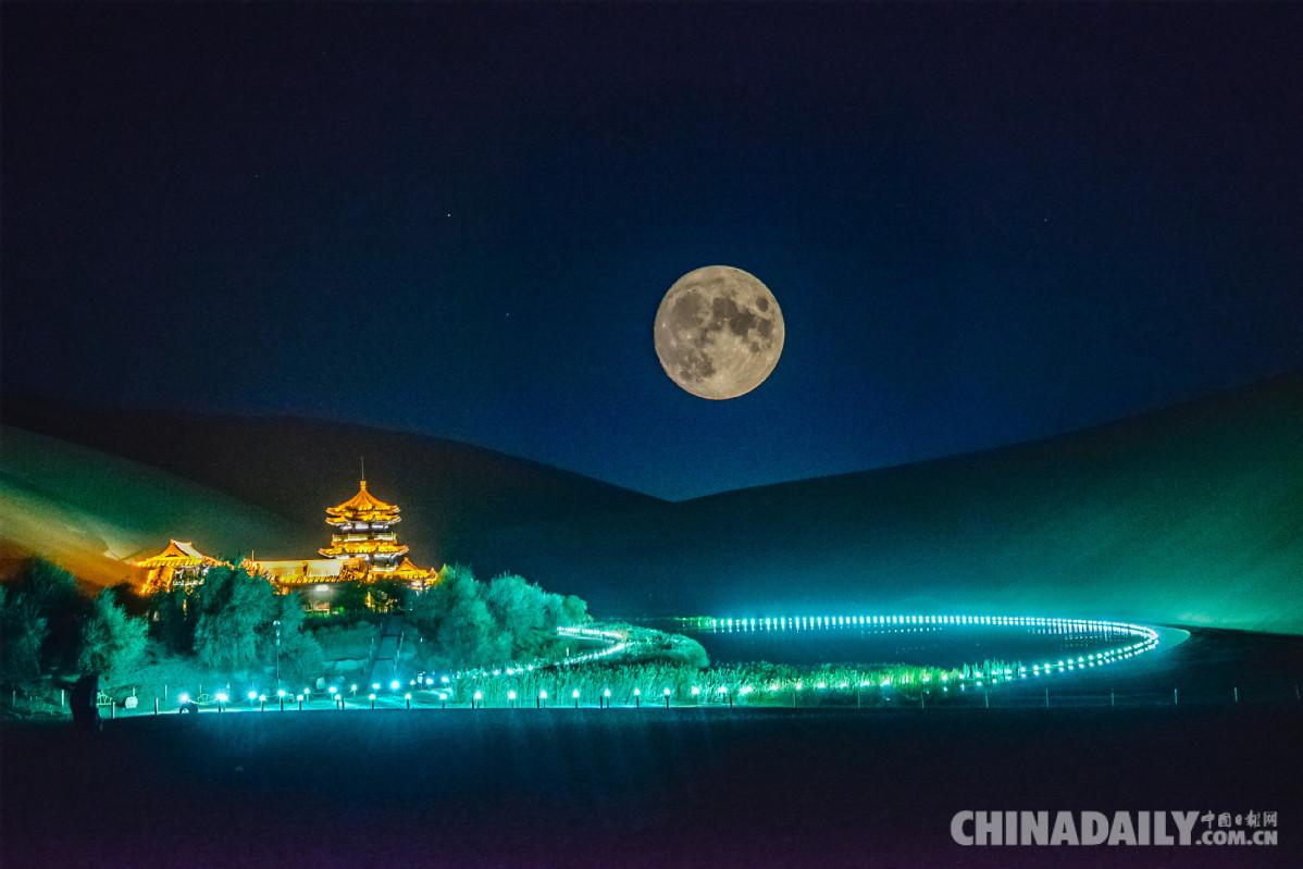 9月21日夜晚,一輪明月升起在大漠敦煌的上空,在中國傳統(tǒng)的中秋節(jié),甘肅敦煌月牙泉小鎮(zhèn)中心廣場舉辦了中秋拜月等民俗活動。先舉行了仿古“拜月大典”。伴隨著深沉悠揚的樂曲,身穿華麗漢服的參祭女子手捧月餅及各式貢品緩步登臺,在皓月銀輝中虔誠致祭;按照敦煌習(xí)俗,主祭三上香、三祭酒,并于月光與燭光映照之中,向月誦祝。按照傳統(tǒng)儀式祭拜禮成后,主祭將月餅與水果分發(fā)給現(xiàn)場拜月的市民游客,與大家共享中秋拜月祭品。隨后還進(jìn)行了中國傳統(tǒng)民族服裝——旗袍展示、漢服秀、歌舞演出等形式多樣的民俗活動。當(dāng)日晚,小鎮(zhèn)人來人往非常熱鬧,眾多敦煌市民和游客參加拜月活動,受疫情影響,部分活動在網(wǎng)上進(jìn)行,不少媒體人,對敦煌賞月、拜月活動進(jìn)行了網(wǎng)絡(luò)直播。