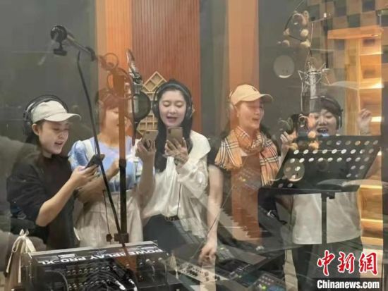圖為蘭州音樂人錄制抗疫題材歌曲《友善歌》,該歌以抗疫一線的感人事跡為背景創(chuàng)制。 朱泓蓉 攝