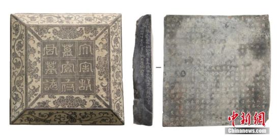 12月14日,甘肅省文物局發(fā)布該省武威地區(qū)唐代吐谷渾王族墓葬群最新考古研究成果。圖為慕容智墓墓志及志側文字。 中新社發(fā) 甘肅省文物局 供圖