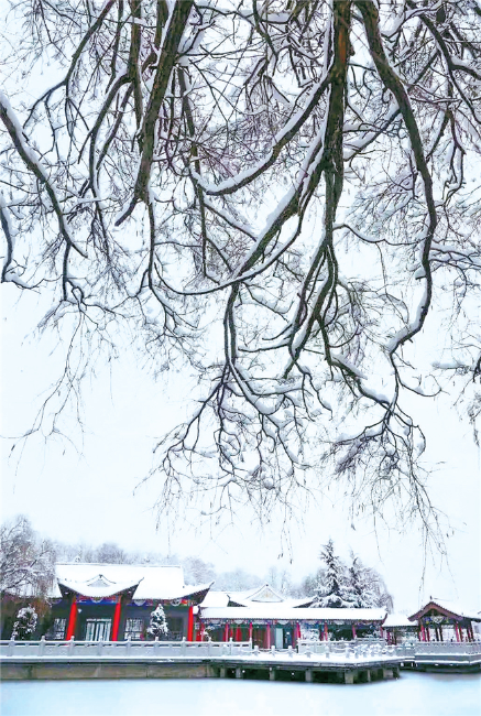 去年12月底,一位老師來西峰講學(xué),我陪先生到濕地海綿公園轉(zhuǎn)悠,剛剛步入人行道,發(fā)現(xiàn)遠(yuǎn)處湖水中央有七八只白鷺在棲息,朝陽斜射到湖面上,水波瀲滟,像細(xì)碎的金斑,白鷺安詳?shù)叵礈熘鹈?,有一只白鷺單腿直立著,恰似依著一根筆直纖細(xì)的鐵絲,半張著翅膀,欲飛不飛的樣子,剩下的幾只白鷺在戲水,迷人極了。