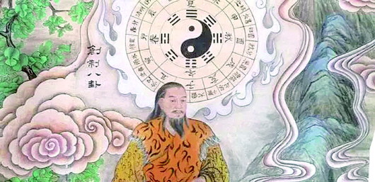 這是多年來浮現(xiàn)于我想象中伏羲在渭河岸邊的卦臺山上苦思冥想、頓悟天機(jī)、創(chuàng)立八卦的形象。