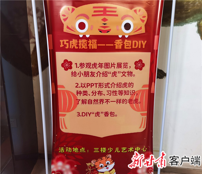 大年初二的“巧虎攬福——香包DIY”活動中,小朋友們則在講解員的介紹下,了解了虎的幾個種類及各異習(xí)性;通過“你來比劃我來猜”等小游戲,知曉了2022年北京冬奧會的舉辦時間、地點,包含項目等;并在自主制作香包的過程中,體驗傳統(tǒng)民俗魅力,感受本土文化之美。