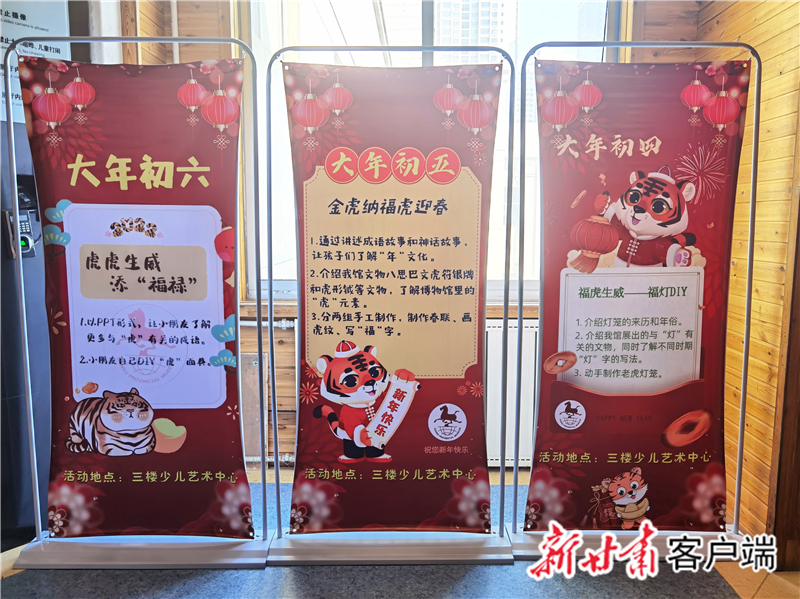 “后續(xù),還有大年初三的‘靈虎送福——虎紙漿畫DIY ’活動、大年初四的‘?;⑸?mdash;—福燈DIY ’活動、大年初五的‘金虎納?;⒂?rsquo;活動、大年初六的‘虎虎生威添‘福祿’活動’。”省博物館社會教育部主任盧冬介紹,每場活動面向約30名小朋友開展,經(jīng)過前期策劃準(zhǔn)備,除了省博物館社教部的10余名工作人員,給孩子們普及有關(guān)虎和北京冬奧會的知識,還有來自西北師范大學(xué)、蘭州二十七中等校的學(xué)生志愿者,指導(dǎo)輔助孩子們玩游戲、做手工。