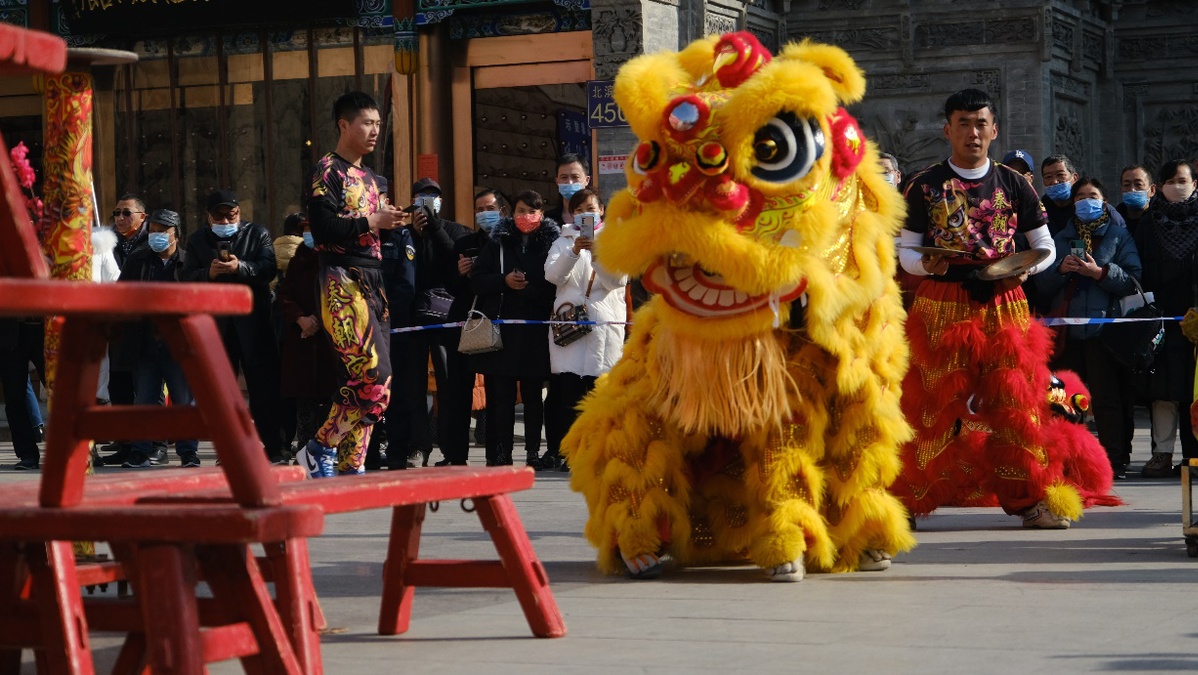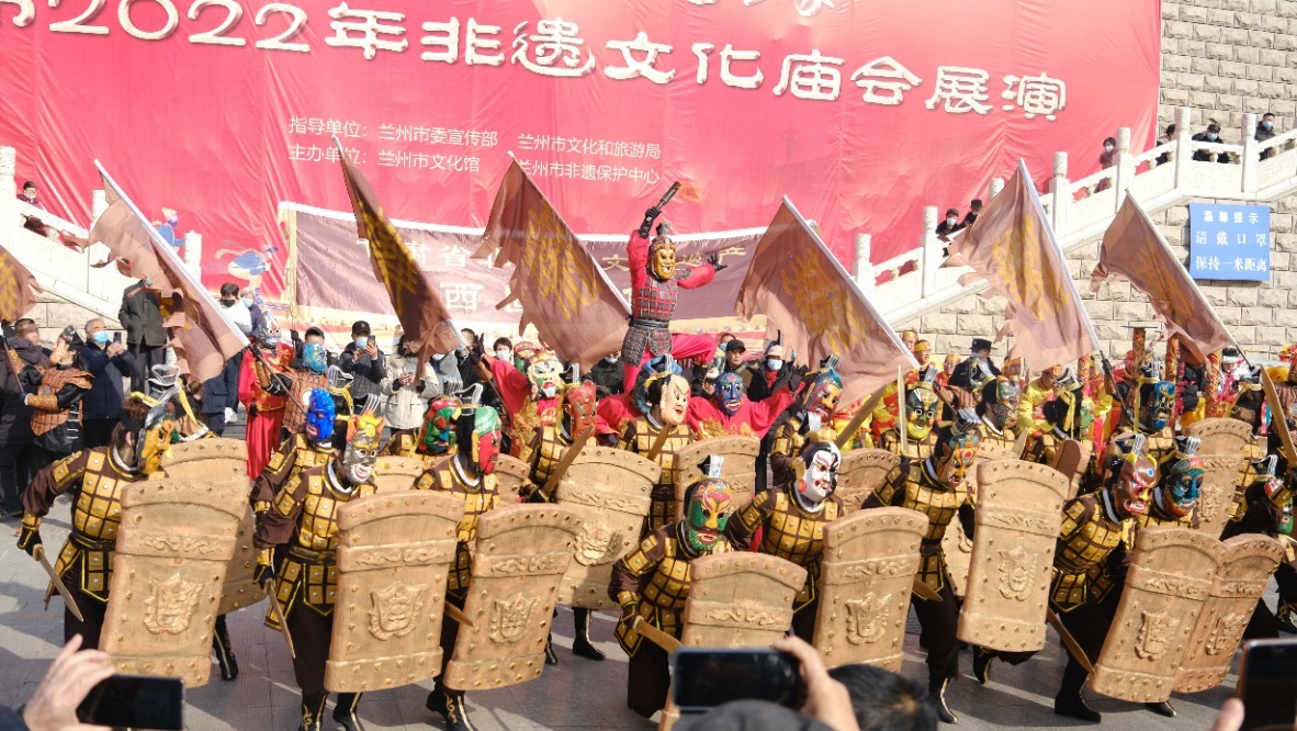 2月2日, 大年初二,“冬奧過大年·文化進(jìn)萬家”蘭州市2022年非遺文化畝會展演活動在甘肅省蘭州市城關(guān)區(qū)金城關(guān)舉行。