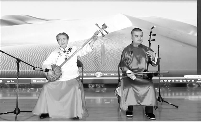 盲人母子馮蘭芳、徐昌輝表演的涼州賢孝《八步沙六老漢,誓把沙漠變綠洲》節(jié)目獲戲曲類三等獎。 省殘聯(lián)供圖