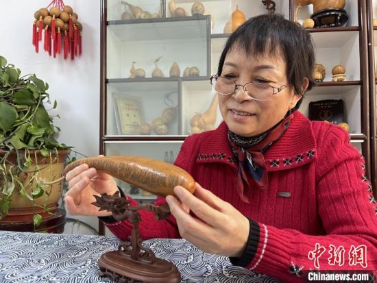2月15日,蘭州市非遺傳承人陳兵在工作室展示自己雕刻的微雕作品,她擅長(zhǎng)在雞蛋大小的葫蘆上雕刻敦煌壁畫(huà)、敦煌飛天,以及佛教經(jīng)文,一把刻刀上下翻飛之后,雕刻形象神態(tài)逼真。