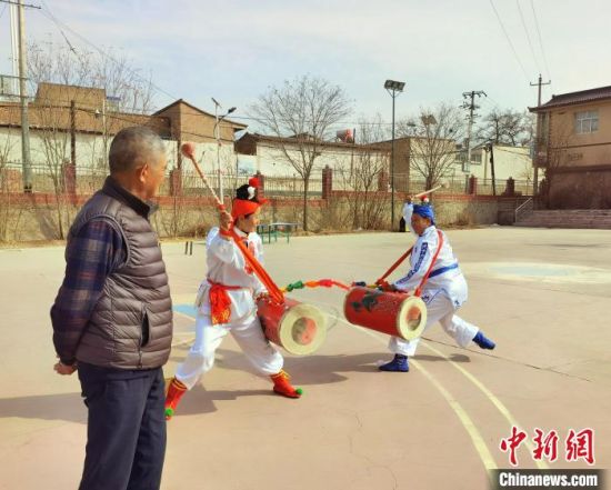春寒料峭,中新網(wǎng)記者走進蘭州市榆中縣金崖鎮(zhèn)陸家崖村,帶隊女子太平鼓隊近30年的陸鵬飛指導(dǎo)隊員訓(xùn)練?!堟骸z