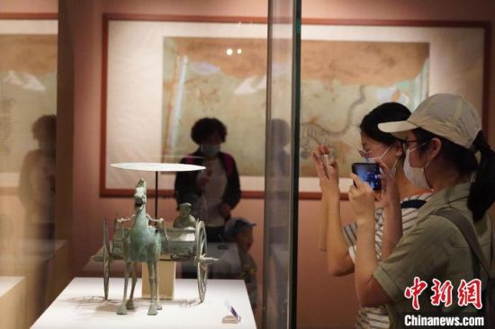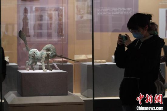 5月18日,游客來(lái)到位于蘭州的甘肅省博物館內(nèi)參觀《大道攸歸:五涼文化展》。圖為“銅獨(dú)角獸”。 九美旦增 攝