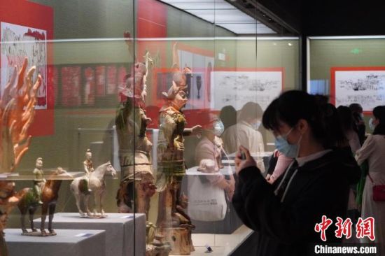 圖為游客在博物館內(nèi)有序參觀,感受五涼文化?!【琶赖┰?攝