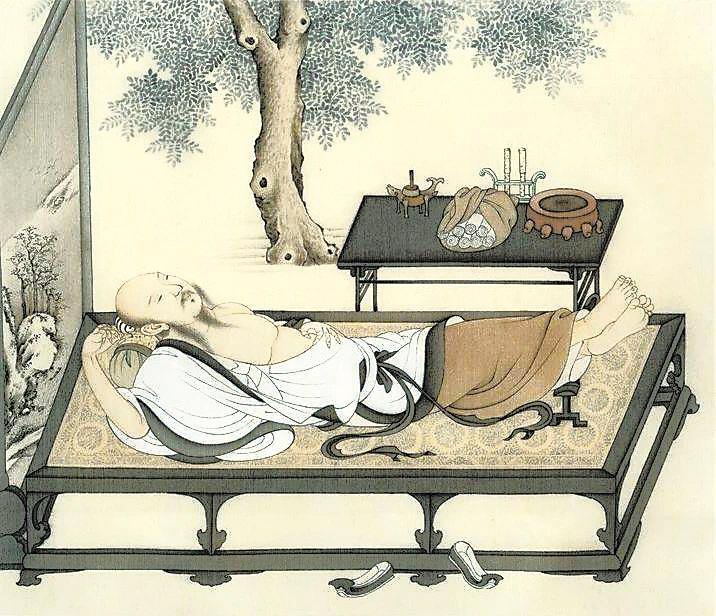唐代的虢國夫人的“夜明枕”更為稀奇。五代王仁裕在《開元天寶遺事》中有記載:“夜明枕”,其實是一種玉石枕頭:“虢國夫人有夜明枕,設(shè)于堂中,光照一室,不假燈燭。”此外,“石膏枕”也是古人的消暑佳物,除了降溫納涼,還有解暑安神的保健功能。唐代詩人薛逢寫《石膏枕》贊頌這種神器:“表里通明不假雕,冷于春雪白于瑤。朝來送在涼床上,只怕風吹日炙銷。”