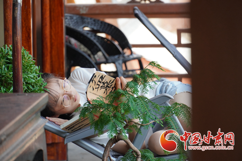 天水古城一家店門(mén)前,有一位正在閱讀的女孩。