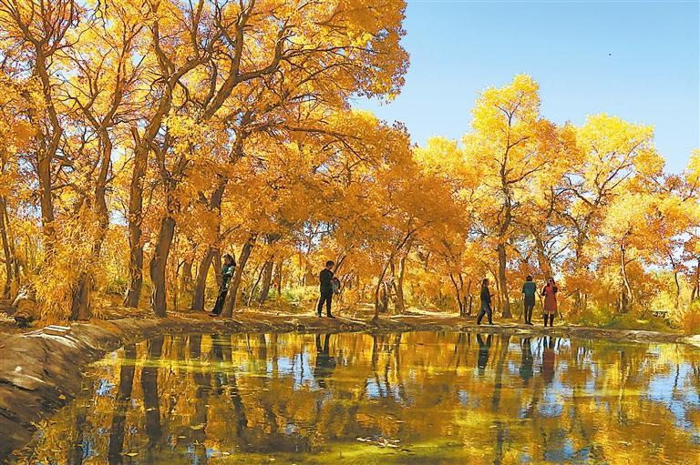 金秋十月,位于敦煌市莫高鎮(zhèn)的胡楊林迎來(lái)一年中最美的時(shí)節(jié),金色胡楊在陽(yáng)光的照射下,顯得更加美不勝收。