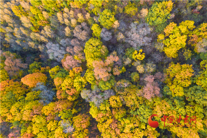 從空中俯瞰秋日的森林
