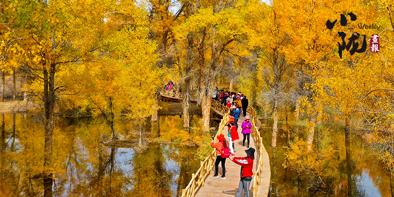 秋風(fēng)起時,一樹金黃在湛藍(lán)的天空下連綿不絕,映著湖面,和流云飄逸的藍(lán)天一起,綻放成一幅壯麗的圖景。