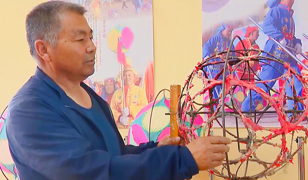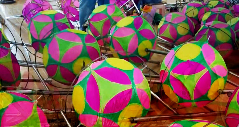 張安邦今年65歲,自其太祖輩起,代代都是技藝嫻熟的滾燈人,到他手里已經(jīng)是第三代了。明清時(shí)的滾燈,燈架、燈盤(pán)、轉(zhuǎn)軸都是木制的,花燈是用竹條或柳條編織,解放前改成了羅圈骨架,而現(xiàn)在經(jīng)過(guò)他改良的景泰滾燈,則是用高碳鋼絲制作而成。