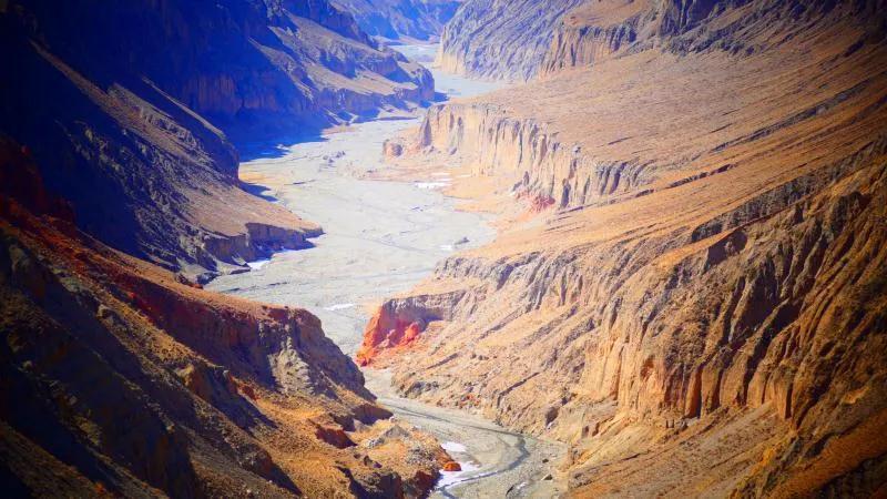 在漫漫歷史長河中,馬營河大峽谷經過風吹日曬,在祁連山下形成了陡峭突兀的深溝險坡。大峽谷內,清澈見底的河水順著蜿蜒小道而下,令人嘆為觀止。馬營河大峽谷集雄、奇、險、秀為一體,峽谷底部清溪流淌,峽谷盡頭雪山聳立,平坦的崖頂云霧迷蒙,整個畫面壯觀雄偉,可以說,馬營河大峽谷可以與美國科羅拉多大峽谷相媲美。