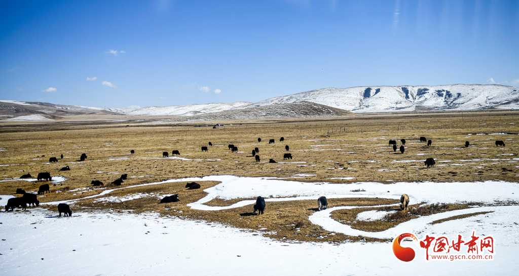 3月8日,甘肅省甘南藏族自治州碌曲縣境內(nèi)再次出現(xiàn)降雪天氣,雪后初霽,大地銀裝素裹,山間云霧繚繞,牛羊成群結(jié)隊在雪原中奔跑、覓食,構(gòu)成一幅和諧的生態(tài)畫卷。