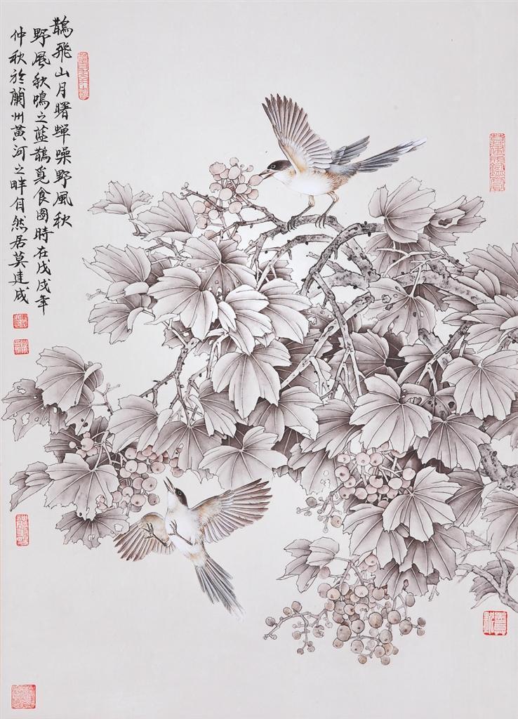 莫建成、莫曉松的花鳥畫藝術是在隴原大地的文脈浸染和敦煌藝術的熏陶滋養(yǎng)下,上下求索、靈苗自探的結晶,以其獨特的畫風,成為西北畫壇上一道亮麗的景觀。此次展覽展出兩位藝術家傾情創(chuàng)作的100多幅精品力作,將傳統(tǒng)積淀與時代審美相連接,實現(xiàn)了自然景觀與人文意象有機融合,展現(xiàn)了對西北大地的情愫、對優(yōu)秀傳統(tǒng)文化的重尋,體現(xiàn)出藝術家致力于中國“工筆花鳥畫傳承與發(fā)展”的深度思考與實踐。本版特選登其中部分作品,以饗讀者。——編者