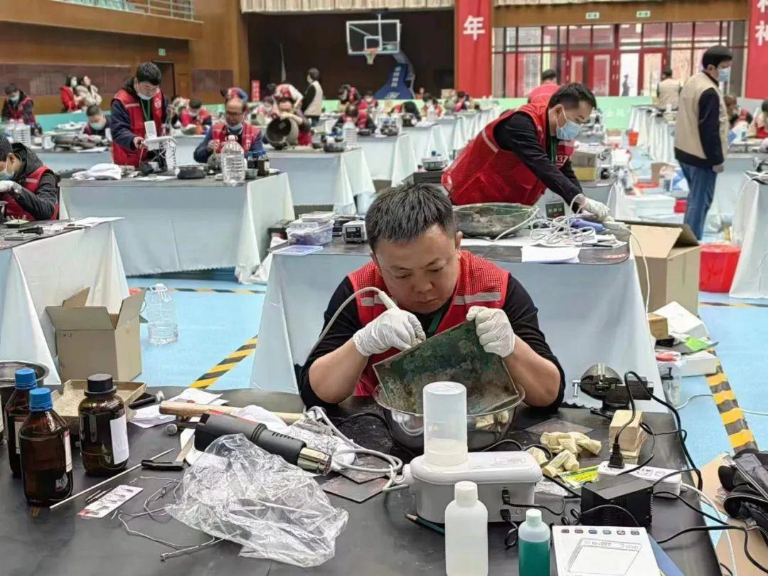 張偉在比賽現(xiàn)場修復青銅簋