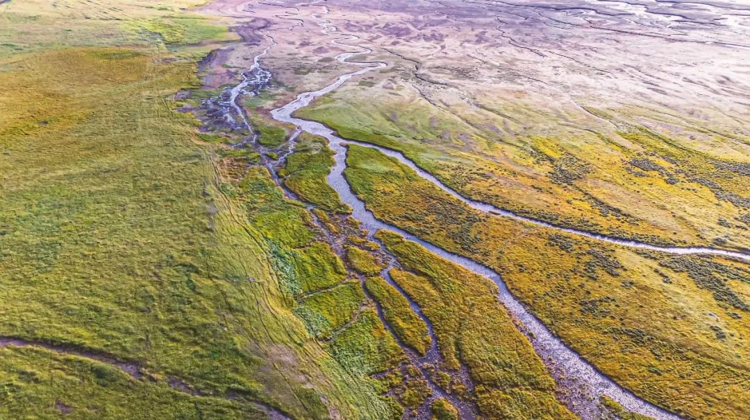 祁連山下的河流穿過山谷流向沙漠,在山前形成一個(gè)又一個(gè)壯觀的沖積扇,錯(cuò)雜縱橫的支流默默滋養(yǎng)著土地,讓隴原萌生出更多的綠意。黃河流經(jīng)瑪曲,繞出180度的“九曲黃河第一彎”,海拔3400米的高原上,也有著奔騰壯闊的蜿蜒。
