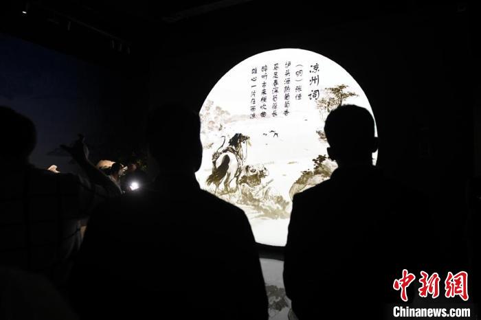 圖為游客在涼州詞館內(nèi)體驗閱讀古詩詞?!〈魑牟?nbsp;攝