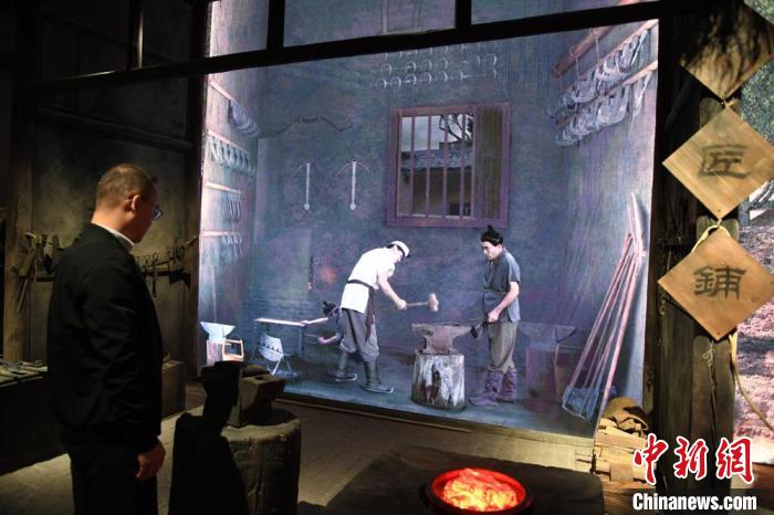 圖為游客在大漢賦館內(nèi)參觀鐵匠鋪。 戴文昌 攝