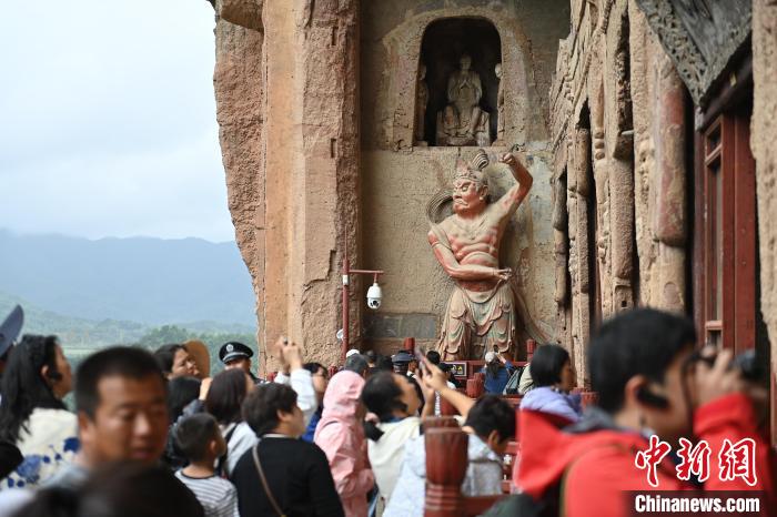 集建筑藝術(shù)、彩塑藝術(shù)、壁畫藝術(shù)于一身的麥積山石窟素有“東方雕塑陳列館”美譽。李亞龍 攝