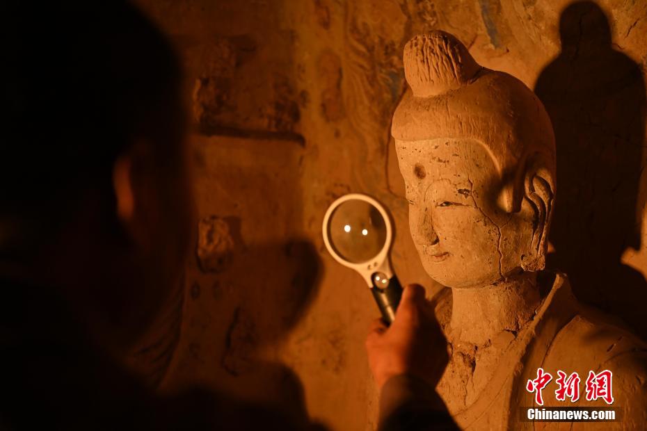 有時(shí)候看似簡單的佛像修復(fù)會遇到各類不同的文物病害,修復(fù)時(shí)間會長達(dá)三年之久,他也見證了文物修復(fù)技藝的變遷。隨著科技進(jìn)步文物修復(fù)手段也變得越來越先進(jìn),他認(rèn)為未來的文物保護(hù)工作一定會越來越好,年輕文保工作者們也一定會想盡更多辦法留住這座世界文化遺產(chǎn)。圖為8月25日,文物修復(fù)師牟常有正在仔細(xì)觀察佛像表面出現(xiàn)的病害問題。李亞龍 攝
