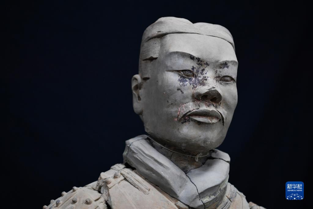 這是秦俑臉部彩繪還原修復(fù)后的樣貌(8月23日攝)。