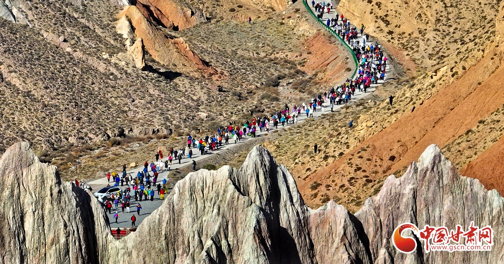11月11日,1000多名群眾在甘肅省張掖市肅南裕固族自治縣外星谷景區(qū)徒步穿越,在領(lǐng)略大自然鬼斧神工的同時強健體魄。