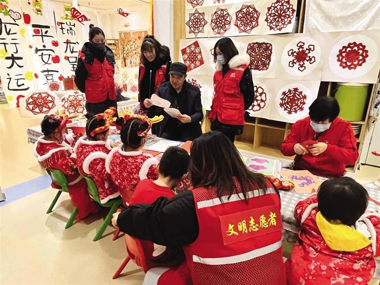12月28日,西站街道西客站社區(qū)攜手華府寶貝幼兒園、蘭州市德鄰社會工作服務(wù)中心開展了“當(dāng)非遺遇上新年”慶元旦迎新年主題活動。社區(qū)和幼兒園特別設(shè)立新年館、騰龍館、京劇館、剪紙館、書畫館以及扎染館六個場館,讓非遺與元旦相結(jié)合,體驗和傳承相呼應(yīng)。