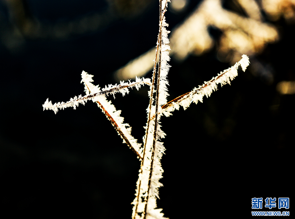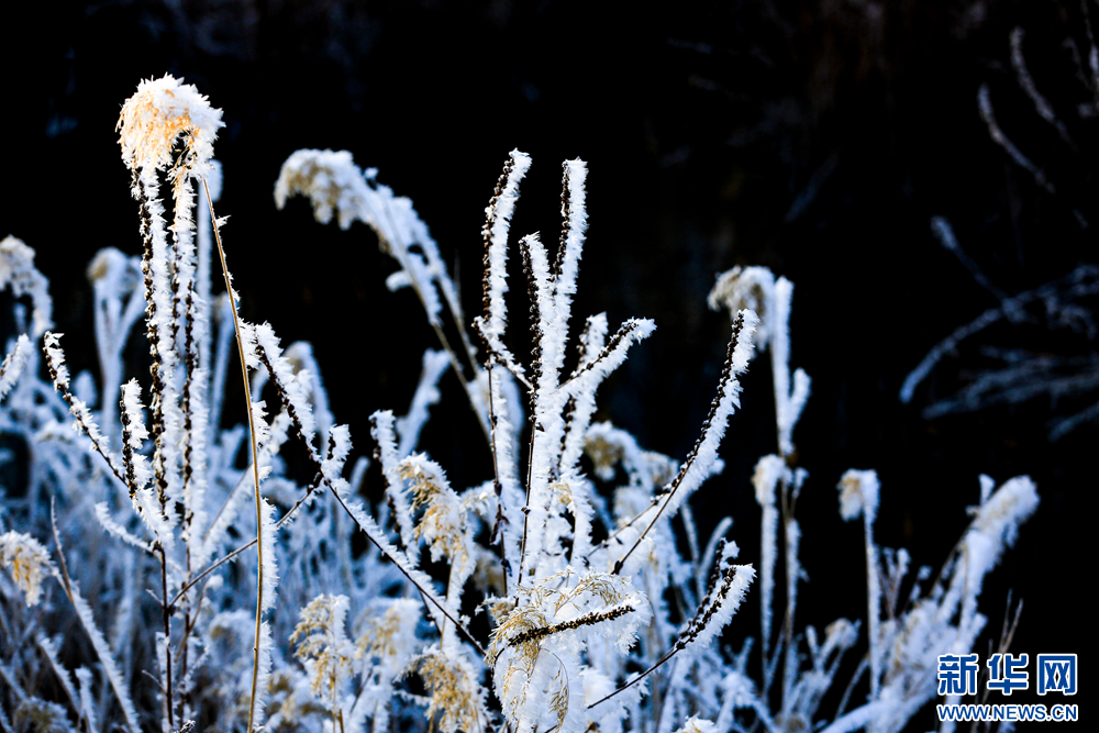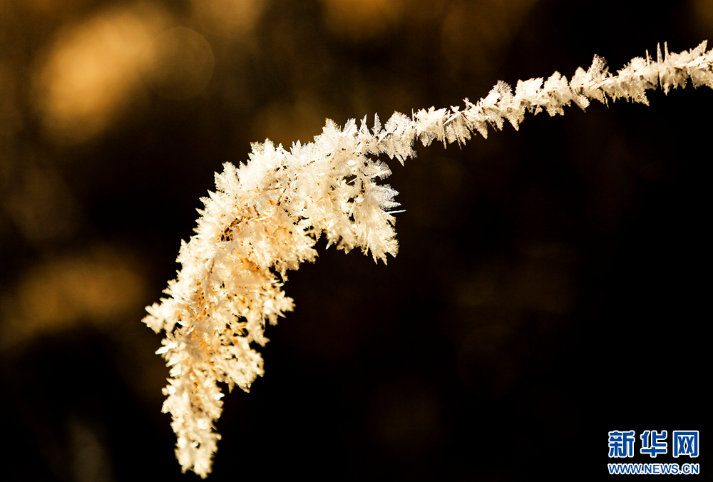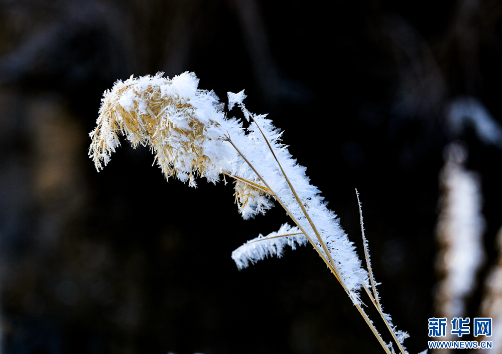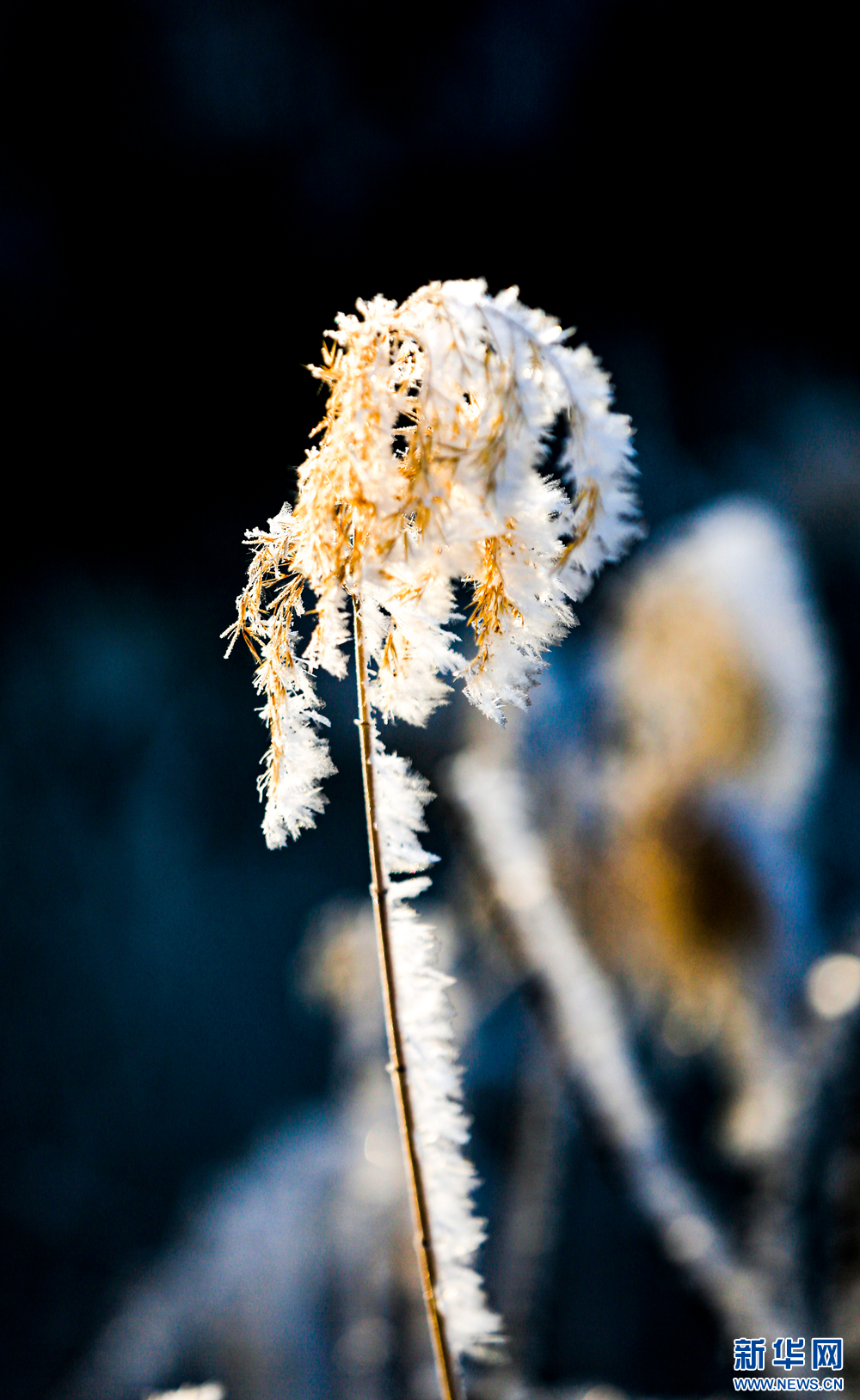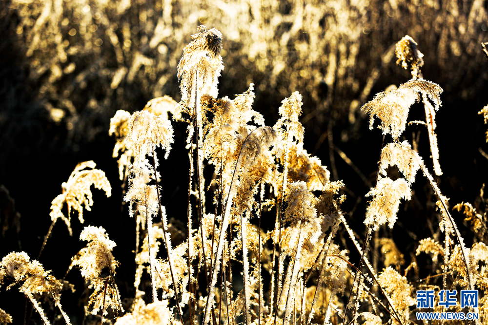 冬日里,甘肅省張掖國家濕地公園蘆葦叢中的蘆花掛滿冰花,晶瑩剔透,美不勝收。新華網(wǎng)發(fā)(陳禮 攝)