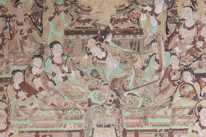 莫高窟第112窟-壁畫-主室北壁-報恩經變之樂舞圖。(敦煌研究院供圖)