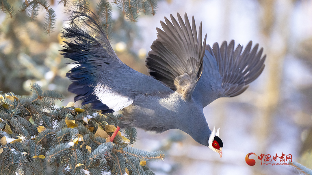 冬日里,藍(lán)馬雞成群飛落山腳覓食,藍(lán)羽丹頂行走在雪地格外搶眼。覓食時(shí),藍(lán)馬雞常用爪刨挖林中空地苔蘚和林緣草地,尋找掉落的云杉種子,刨食的過程會使土壤裸露出來,便于云杉種子生根發(fā)芽,促進(jìn)云杉林天然更新。