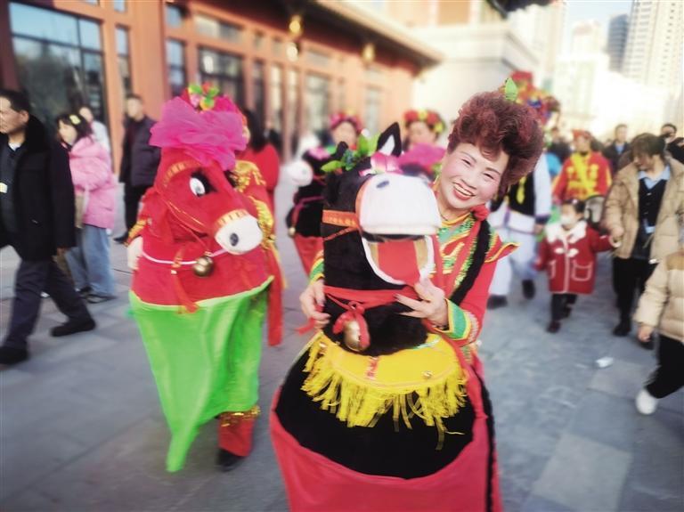 從臘月二十三開始,蘭寶平幾乎每天都要參加表演,與記者見面時,已是當天她在蘭州老街的第四場表演。一天下來,她從東扭到西,出老街進廣場,每到一處都是人們歡樂的源泉和目光的焦點。
