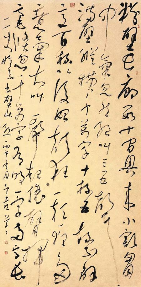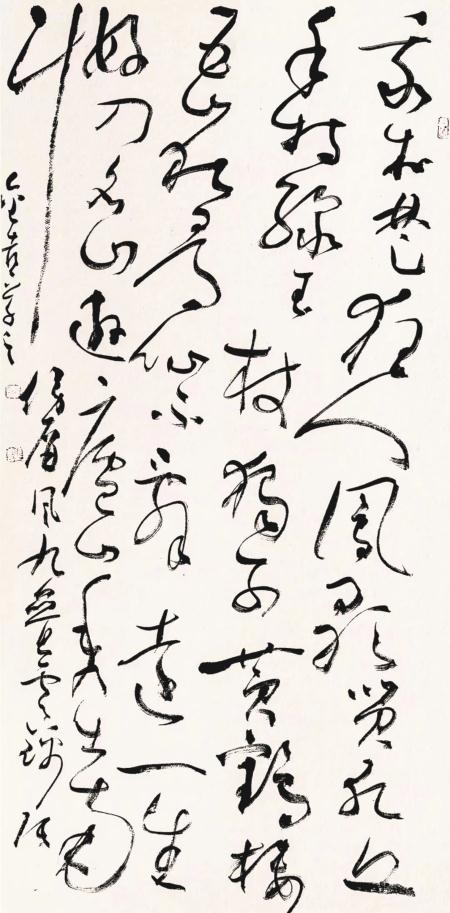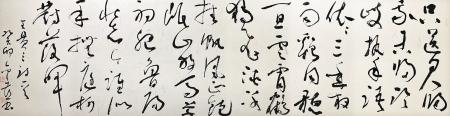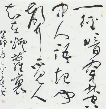 走出去,站在全國的高度,集中進行學習和交流,對一個立志進取的書法家,可以說是一個脫胎換骨的修煉,中國書法發(fā)展的當代狀態(tài),成為進取的最大參照,風格極力貼近時代風尚,在此基礎(chǔ)之上加入個人的鮮活語素,在作品中即表現(xiàn)出了時尚,又有自己的構(gòu)想,才有自己的一席之地。侯金喜抓住時代脈搏,積極捕捉在展覽中尚處于不顯眼的元素,不斷加以顯化,使個人的作品在龐大的展出體系中獨具風采,難度可想而知,在高手如林的態(tài)勢下,侯金喜知難而上、刻苦磨煉,向經(jīng)典取法,向當代名家問路,雙向融合、求新求變,經(jīng)過了這樣一個長的時段的求索,他的草書在全國眾多的草書家中拔地而起,引發(fā)了廣泛的關(guān)注??此牟輹兓亩劝盐赵诹艘粋€比較妥帖的度上,他不以奇異詭變?yōu)槌缟校P畫塑造大體以傳統(tǒng)語言為宗,使柔和與剛健統(tǒng)馭在一起,這種立意基本圍繞中國書法流變的中軸線,可以受到時間的考驗,在一些筆畫中注入的時代信息,經(jīng)過個人的藝術(shù)提煉,具有了新的生氣。在結(jié)構(gòu)選擇上,他同樣進行了深思熟慮,反復篩汰了過度追求時髦的招數(shù),一直強調(diào)深層次的內(nèi)涵,把一個結(jié)體放在歷史的縱向上反復琢磨,他自己認為,形象造型只有沿著時序的推進,才能有機地融入歷史,成為藝術(shù)的終極選擇,所以侯金喜的探索是審慎的,邁進是疊復的,我們欣賞他的作品,可以看出他思考的勤謹,每一個階段都有不同的表達,欣賞者隨著他的筆觸的流瀉,可以領(lǐng)略到豐富的視覺享受。