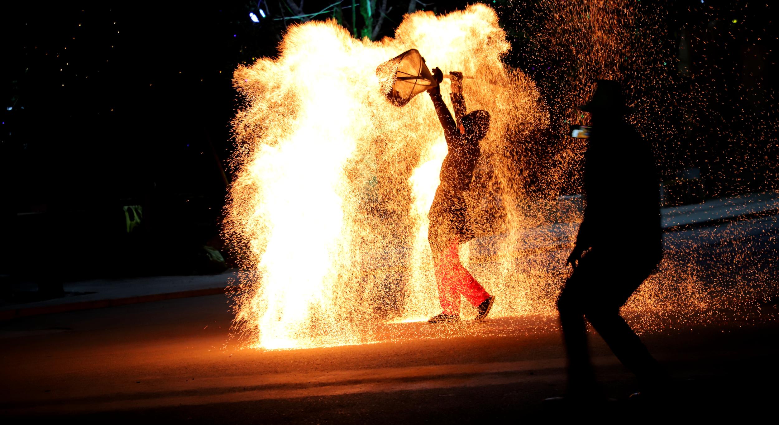 非遺絕技“打鐵花”點(diǎn)靚水簾洞景區(qū)不夜天