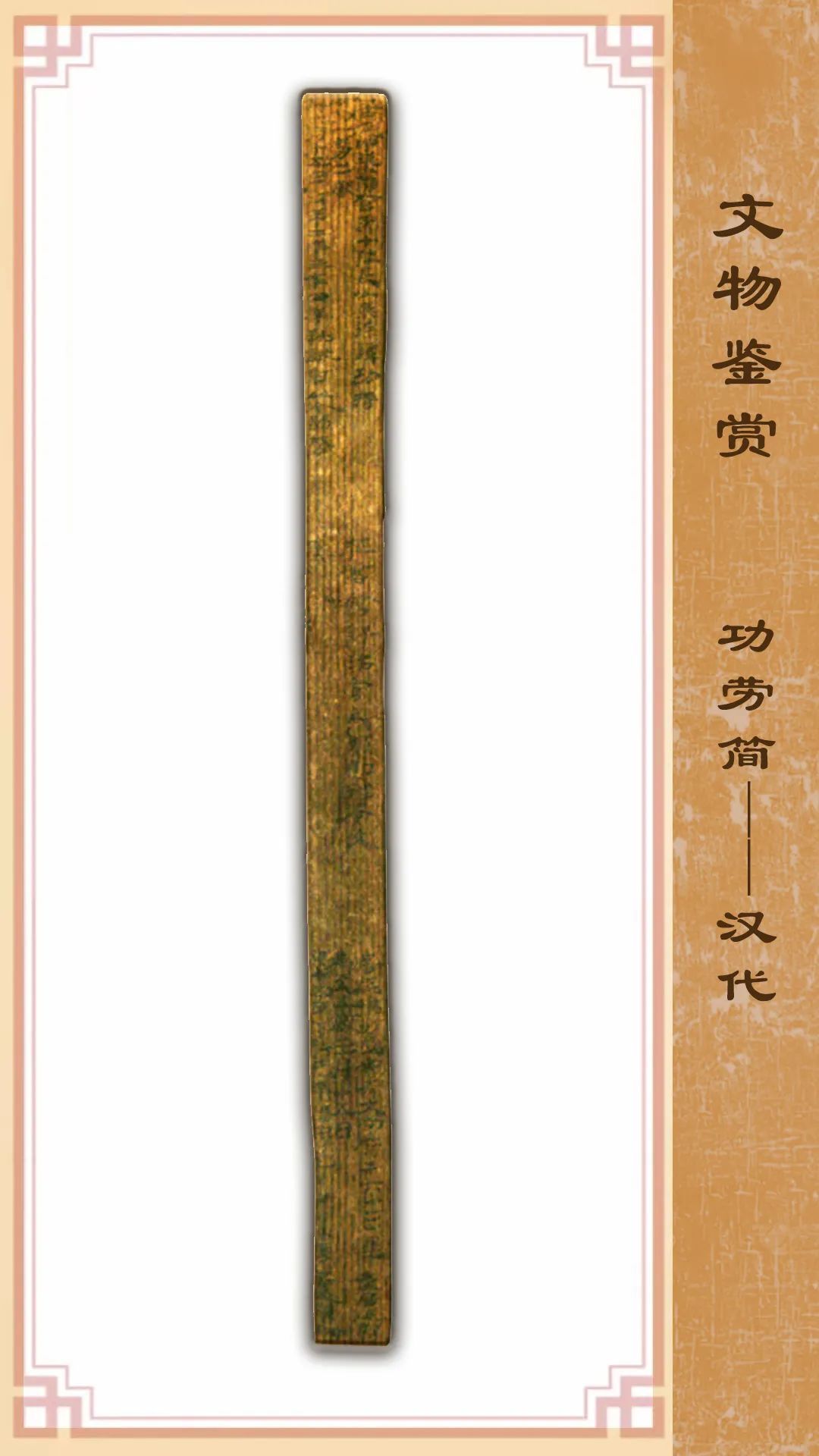 此簡1972年出土于破城子甲渠候官遺址,分三段書寫。內(nèi)容為居延甲渠候官第十燧長徐譚的功將文書。“功將”即“功勞墨將”,功勞墨將文書指官吏個人才能與勞績的登記名單,是官方對官吏功勞下發(fā)的認(rèn)定通知。