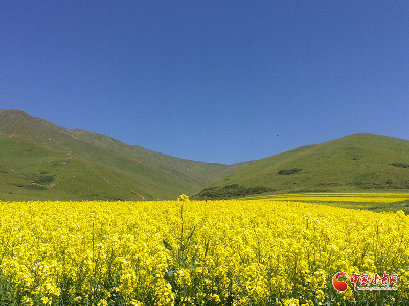大山深處,秋風(fēng)嬉戲,藍(lán)天澄碧,大地金黃,白云悠然。蜂鳴,蝶舞,花香混合著泥土的芬芳,天地猶如一幅散著金光的風(fēng)景畫,渾然一體,如夢似幻。赤腳踩在綠油油的嫩草上,癢癢的,柔柔的,酥酥的。如母親的懷抱,舒適而安寧?;ê8呛⒆觽兊奶焯?,在里面打滾,摔跤,捉迷藏……揮灑無邪的童真。這時,或在花間嬉戲,或在花徑漫步,或在山野奔跑,或干脆在觸手可及的藍(lán)天白云下,枕著花香,靜靜一眠,把自己放逐在原野上,身心兩忘,回歸一個沒有謊言的世界。安靜,正如無邊無際的虛空;澄澈,又像一望無垠的凈土。清新的空氣,寂靜的原野,一切都是那么凈,靜。一切都融入自然,回歸純真。圣潔,澄凈,忘世,忘機(jī),忘我,又那么浪漫。油菜開始開花。一開始是綠葉叢中一點(diǎn)黃,就好像是綠色的海洋里揚(yáng)著黃色的一桅風(fēng)帆。接著是倆桅三桅……有一天你會發(fā)現(xiàn)綠色的海洋消失了,取而代之的是一片金黃色的閃著耀眼光芒的海平面。微風(fēng)過處,黃色的波濤此起彼伏,后浪推著前浪。有蜜蜂在花間穿梭,時而飛起,時而停在花蕊中辛勤地采著花粉,工作間隙還不忘嗡嗡地哼著歌。蝶兒翩翩飛舞在花海,兒童急急追蝴蝶。好一幅“兒童急走追黃蝶,飛入菜花無處尋”的畫面。白色蝶兒猶如黃色海面上飄著的白云,黃色蝶兒歇息在花的枝頭,你分不清是蝶兒變成了花還是花變成了蝶兒。山區(qū)的油菜花和川區(qū)的油菜花又有著迥然不同的風(fēng)采。