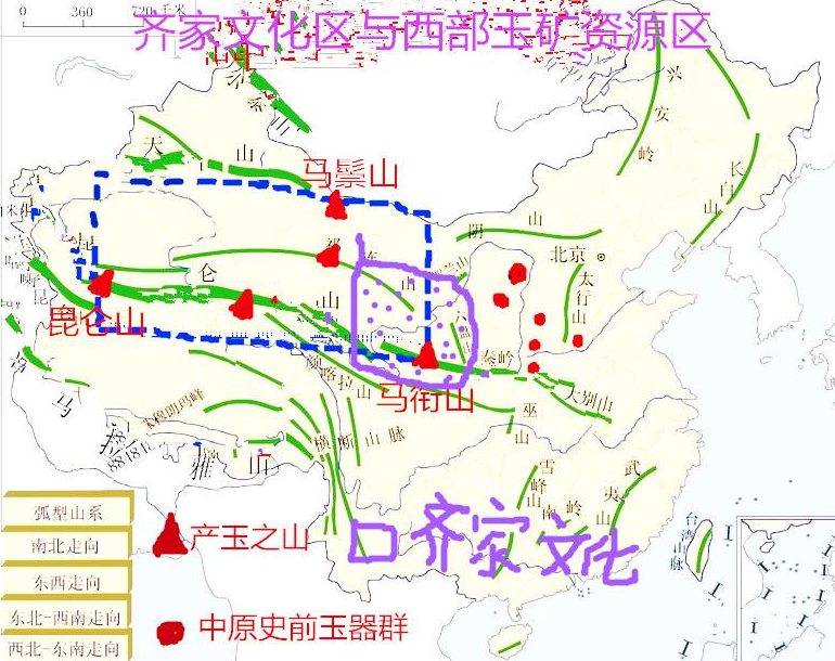 除肯定史前玉文化大傳統(tǒng)的價(jià)值之外,小說(shuō)中的山羌、脩己、共工、三苗玉工、齊家人等人物形象也都與玉石有著密不可分的關(guān)系。山羌是來(lái)自鹽澤的牧羊女,居住在昆侖山巔的閬風(fēng)苑,“她頭發(fā)蓬松,頂戴玉勝,上身披虎皮褂,下身圍豹皮裙,三只兇猛青鳥(niǎo)在頭頂飛翔”,這一描述脫胎于《山海經(jīng)·西山經(jīng)》“又西三百五十里曰玉山,是西王母所居也。西王母其狀如人,豹尾虎齒而善哮,蓬發(fā)戴勝”的記載?!赌绿熳觽鳌犯斒隽酥苣峦踬e見(jiàn)西王母,西行至“群玉之山”攻取玉石的經(jīng)過(guò)??梢?jiàn),小說(shuō)中的牧羊女山羌是以西部出產(chǎn)美玉的昆侖山游牧部落首領(lǐng)西王母為原型的,作者還借她與脩己的交談交代了西玉東輸?shù)氖穼?shí)。脩己手持黃玉制成的耒錘,“到過(guò)昆侖山、祁連山、馬鬃山、馬銜山、岷山等一百五十座產(chǎn)玉石的大山”,她的“朝山”走完了能夠搜集到玉石信息的所有山川、河流。這里“一百五十座”的確數(shù)源自《山海經(jīng)》記載的140多座玉山,正是作者對(duì)自己熟稔典籍的機(jī)巧化用。近幾年,考古、歷史和人類學(xué)者們通過(guò)多達(dá)數(shù)十次的實(shí)地考察,已大致勾勒出一個(gè)西起昆侖山,東到馬銜山,南抵祁連山,北達(dá)馬鬃山,大致為200萬(wàn)平方公里的西部玉礦資源分布區(qū)。作為幾乎每一次考察活動(dòng)的中堅(jiān)力量,馮玉雷依據(jù)自己親歷所得的學(xué)術(shù)成果,在小說(shuō)中得心應(yīng)手地虛構(gòu)了一個(gè)擁有辨玉秘術(shù)的西荒國(guó),并巧妙地將“共工怒觸不周山”的神話改編為觸不周而化三危?!渡袝?shū)·禹貢》載“黑水、西河惟雍州……三危既宅,三苗丕敘……厥貢惟球琳瑯軒”,“球琳瑯軒”四個(gè)斜玉旁的字從文獻(xiàn)角度提示了三危出玉的線索。2017年8月,玉帛之路考察團(tuán)還曾在敦煌三危山旱峽山谷發(fā)現(xiàn)了玉礦。三苗相傳是黃帝至堯舜時(shí)期分布在長(zhǎng)江中游以南的氏族部落,與共工同屬“四罪”,《尚書(shū)·舜典》載舜“竄三苗于三危”,又《史記·五帝本紀(jì)》謂舜“遷三苗于三危,以變西戎”。馮玉雷創(chuàng)造性地將“竄三苗于三危”的文獻(xiàn)記錄與最新學(xué)術(shù)成果相結(jié)合,將三苗描繪為南方精通治玉工藝的部落,他們的西遷不是流放和懲罰,而是一次官方組織的大規(guī)??辈?、采玉活動(dòng),目的是為了整理和打磨西部玉石資源以為中原王朝的建立提供精神信仰和意識(shí)形態(tài)的依據(jù)。
