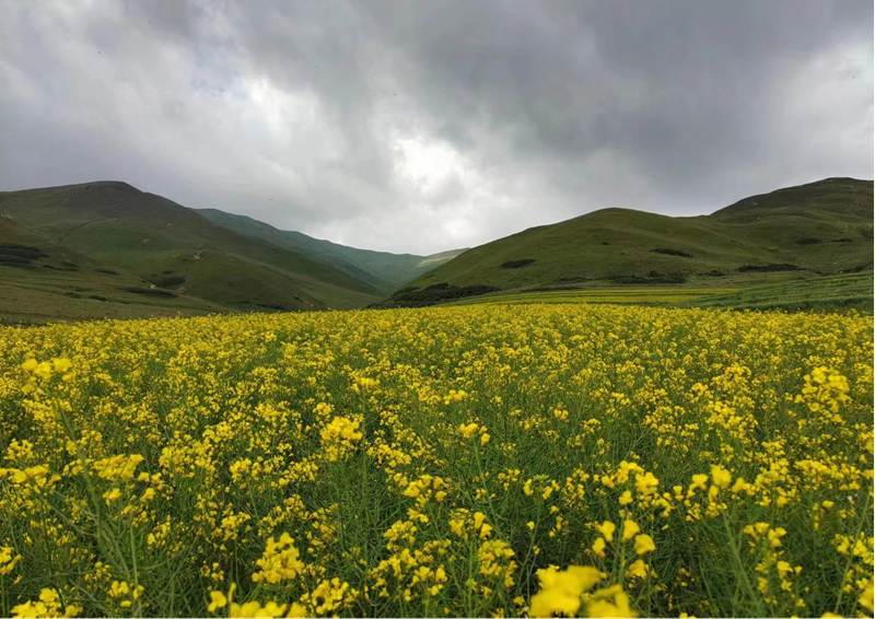 登馬銜山,不僅可以體會(huì)“山外有山”的景致,還會(huì)經(jīng)歷“山上有山”的情境。馬銜山主峰海拔3671米,是隴中最高峰,隴右黃土高原上的一座美麗的巖石島。“寒山積雪”是馬銜山奉獻(xiàn)給蘭州的一道獨(dú)特風(fēng)景,春天的馬銜山峰頂依然冰雪覆蓋,難以登臨。我們站在三千多米海拔、春意萌發(fā)的山肩,舉目五極,頭頂是巍峨厚重的馬銜山主峰,云團(tuán)旋繞飛灑甘霖;北望祁連如屏西指,烏鞘嶺遠(yuǎn)峙云天;南眺岷山逶迤交錯(cuò),蓮花山群峰聳立;西瞻積石雄踞青藏,峰巒疊嶂;東看車道嶺臂膀蜿蜒,把華家?guī)X與馬銜山緊密牽連?!陡拭C通志》卷五載:“馬銜山,在縣(今臨洮縣)北九十里。史稱‘馬銜’,俗誤為‘寒’。接蘭州、金縣(今榆中縣)界。其山綿亙數(shù)百里,勢(shì)極高俊,雖炎夏冰雪不消。”馬銜山橫亙?cè)谔m州與臨洮之間,蘭州與臨洮在歷史上曾相互管轄,有時(shí)候蘭州屬臨洮府管,有時(shí)候臨洮屬蘭州府管轄,但不論誰管轄,馬銜山都是兩地及隴右黃土高原地區(qū)重要的“座望之山”。
