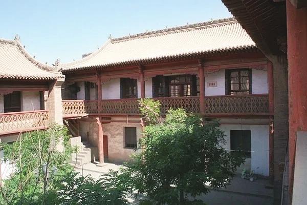 這是一座由府門、大堂、二堂、三堂、書齋、廂房和后宅一套龐大的雙層樓閣式四合院(包括主樓、配樓、藏書樓等),以及亭臺(tái)、泉池、園林組成。四合院樓閣歇山屋頂,青磚砌墻,雙獅守門,中間是正堂,兩邊是七十二座虎頭街門,飛檐雕柱,氣勢(shì)磅礴,煞是威嚴(yán)。府門內(nèi)有磚雕磨塑的麒麟照壁。整個(gè)府邸設(shè)計(jì)獨(dú)特,氣勢(shì)非凡,占據(jù)了甘州城里的一條大街。