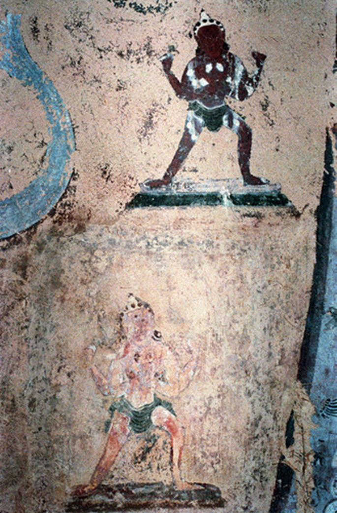 莫高窟465洞窟是從未開放過的重要洞窟之一。其內主要珍藏有關佛教密宗的壁畫。它們屬元代(公元1206—1368年)壁畫之精華,具有很高的藝術價值。圖為修復后的被盜壁畫之二明王像(下)。新華社記者李生才攝(1989年10月7日發(fā))